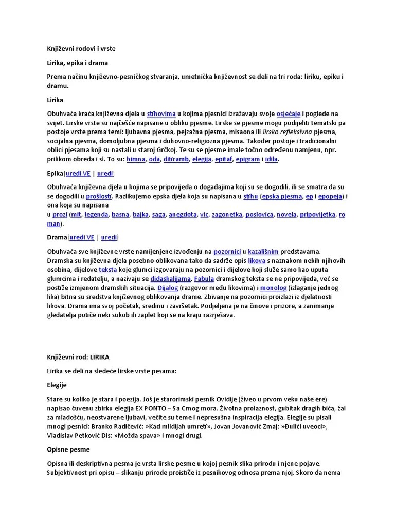 Susret sa norveškom u svojstvu ambasadora bio je presudan i podstakao je autorku na ponovno čitanje "pisama iz norveške" isidore sekulić, koje je, priznaje, prvi put ovlaš pročitala u gimnazijskim danima i to pre svega … Rodovi i vrste u književnosti svekoliko književnoumetničko stvaranje raznoliko je po spoljašnjim formalnim osobinama, unutrašnjim svojstvima, načinu povezivanja i razvijanja motiva, tematskom izboru, izražajnim sredstvima. Skupinu djela u kojima se ponavljaju neke stalne osobine u temelju svakog književnog roda drukčiji je način autorova izražavanja.Čini najširu skupinu književnih djela razvrstanih po načelu sličnosti, tj.